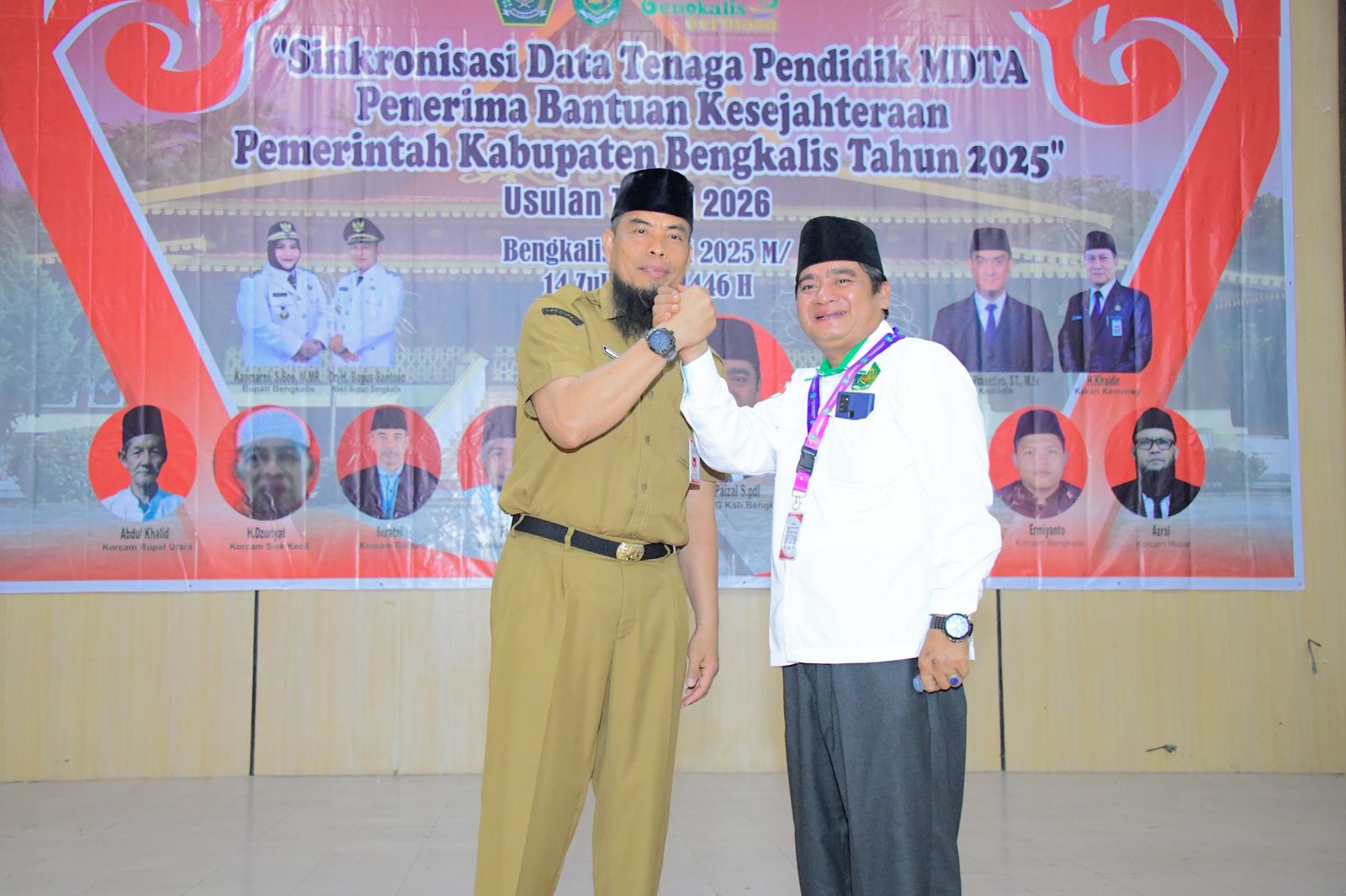 Faktanusantararaya.com, Bengkalis – Bupati Bengkalis Kasmarni, diwakili Asisten Pemerintahan dan Kesejahteraan Rakyat Andris Wasono, membuka secara resmi kegiatan Sinkronisasi Data Guru Penerima Bantuan Kesejahteraan pada Sekolah MDTA dan Madrasah se-Kabupaten Bengkalis Tahun 2025, Selasa 10 Juni 2025.