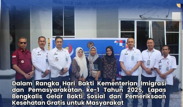 Faktanusantararaya.com, Bengkalis- Dalam rangka memperingati hari bakti kementrian imigrasi dan pemasyarakatan ke 1 th 2025 lembaga pemasyarakatan klas IIA bekerja sama dengan dengan kantor dinas imigrasi Bengkalis melaksanakan kegiatan bakti sosial dan pemeriksaan gratis bagi masyarakat sekitar.khusus nya bagi keluarga warga binaan pemasyarakatan, kegiatan berlangsung di lingkungan lapas Bengkalis dengan suasana penuh kebersamaan dan kepedulian sosial.