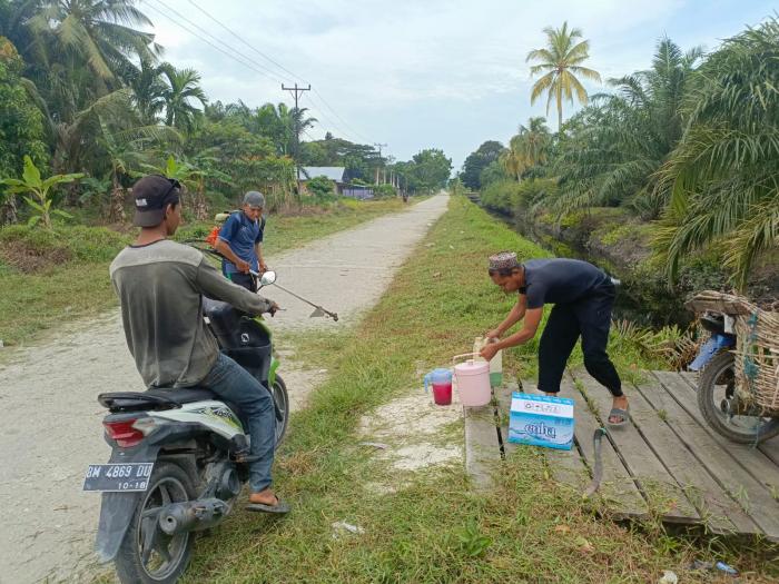 Desa Bantan Air Gotong Royong Bersihkan Jalan Menjelang MTQ Tingkat Provinsi Riau