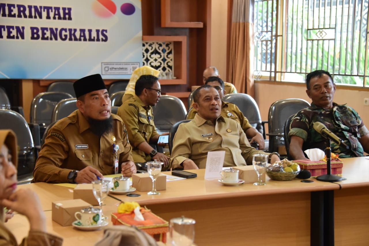 Pada pertemuan kali ini Senin, 8 September 2025, bertempat di Ruang Rapat Hang Jebat Bengkalis, Bupati Bengkalis diwakili Wakil Bupati Bengkalis Dr. H. Bagus Santoso hadir secara zoom meeting sebagai bentuk nyata komitmen Pemerintah Kabupaten Bengkalis untuk terus bersinergi dengan pemerintah pusat dalam menjaga stabilitas ekonomi dan meningkatkan kesejahteraan masyarakat.Rakor yang dipimpin langsung oleh Menteri Dalam Negeri Republik Indonesia, Muhammad Tito Karnavian, ini dihadiri sejumlah pejabat tinggi negara, diantaranya Plt. Deputi II Kepala Staf Kepresidenan Edy Priyono, Menteri Koordinator Pemberdayaan Masyarakat Indonesia Abdul Muhaimin Iskandar, Kepala BPS Amalia Adininggar Widyasanti, Direktur Jenderal Perumahan Perdesaan Kementerian PKP Dr. Drs. Imran, Menteri Pertanian Andi Amran Sulaiman, serta Jaksa Agung Muda Perdata dan Tata Usaha Negara Kejaksaan RI Dr. R. Narendra Jatna.