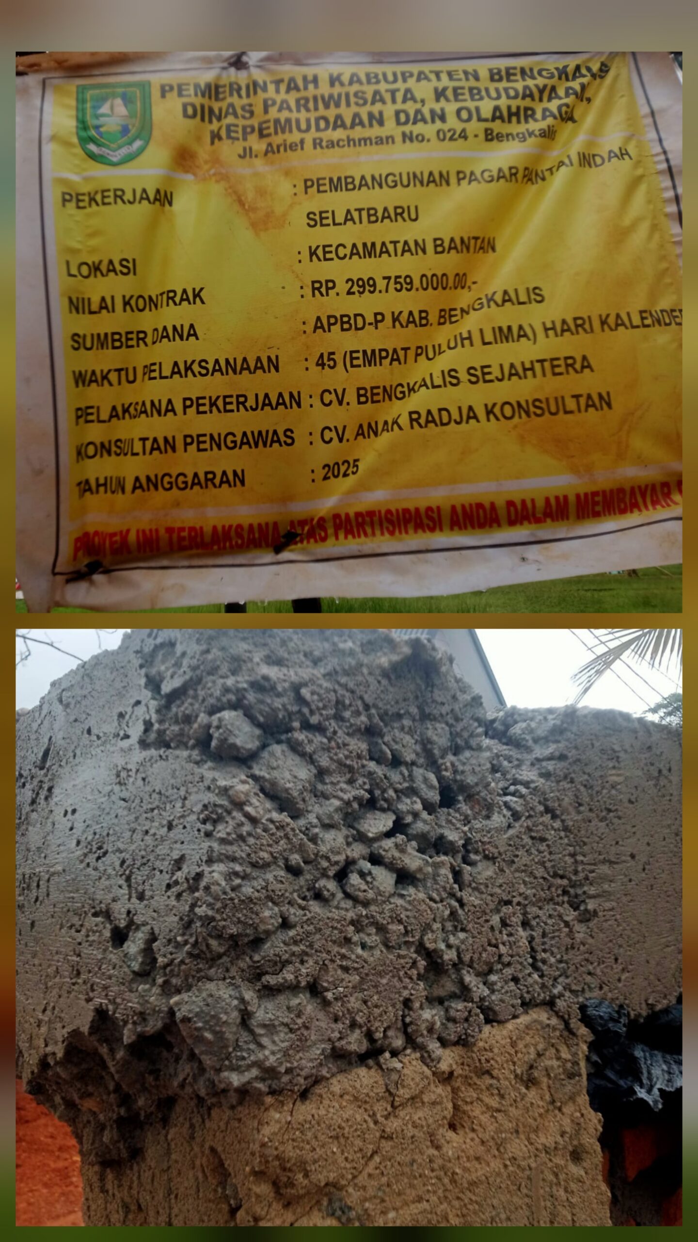 Pekerjaan tersebut banyak di nilai dari segi pengerjaan maupun dari bahan yang asal asalan membuat pembangunan pagar bata itu sangat tidak wajar Dari kurang nya bahan adukan dari kurang nya pasir dan batu nya, menurut tim yang ke lokasi lebih baik memakai yang lebih profesional dari pada memakai Adin sebagai pengurus proyek tersebut yang memakai CV Bengkalis sejahtera dan memakai CV anak radja konsultan Pekerjaan pembangunan pagar bata