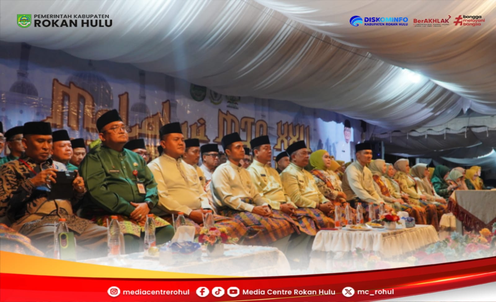 MTQ tahun ini mengangkat tema “Membangun Generasi Qur’ani yang Handal dan Bermartabat Menuju Masyarakat Rokan Hulu Sejahtera dan Berkelanjutan.”Turut hadir Bupati Rohul Anton, S.T., M.M., didampingi Wakil Bupati H. Syafaruddin Poti, S.H., M.M., Ketua TP PKK dr. Yeni Dwi Putri, Ketua GOW Hj. Masni Taher, Sekda M. Zaki, S.STP, M.Si, unsur Forkopimda, Ketua LPTQ Riau dan Rohul, para Asisten, Kepala OPD, Pejabat Eselon, Camat serta seluruh Kafilah MTQ.Bupati Anton dalam sambutannya menegaskan bahwa penyelenggaraan MTQ tidak hanya menjadi ajang perlombaan membaca Al-Qur’an, tetapi juga wahana strategis untuk membina iman, akhlak, dan karakter generasi Qur’ani.