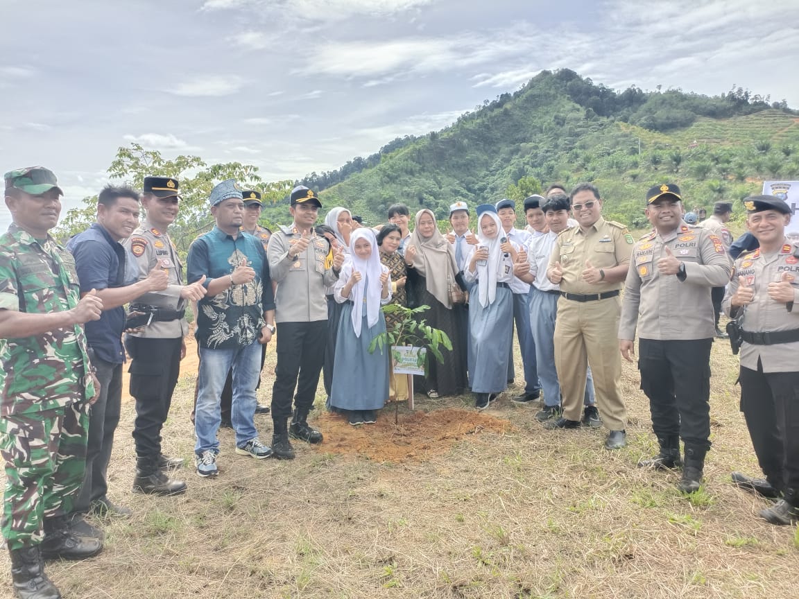 Rokan Hulu – Polres Rokan Hulu memperingati Hari Pohon Sedunia Tahun 2025 dengan melaksanakan upacara dan kegiatan penanaman pohon di kawasan Bukit Suligi, Desa Aliantan, Kecamatan Kabun, pada Jumat (21/11/2025) pukul 09.00 WIB. Kegiatan ini menjadi momentum penting dalam memperkuat komitmen Polres Rokan Hulu terhadap pelestarian lingkungan melalui program Green Policing.Upacara dipimpin langsung Kapolres Rokan Hulu AKBP Emil Eka Putra, S.Ik., M.Si sebagai Inspektur Upacara. Hadir pula Wakapolres Rokan Hulu Kompol I Made Juni Artawan, S.Ik., M.H, para Kasat, para Kapolsek jajaran, pejabat utama Polres Rohul, unsur TNI, Camat Kabun, tokoh adat, perangkat desa, Senkom, Banser NU, para pelajar SMKN Puti Maipat, serta lebih dari 200 peserta dan undangan lainnya.