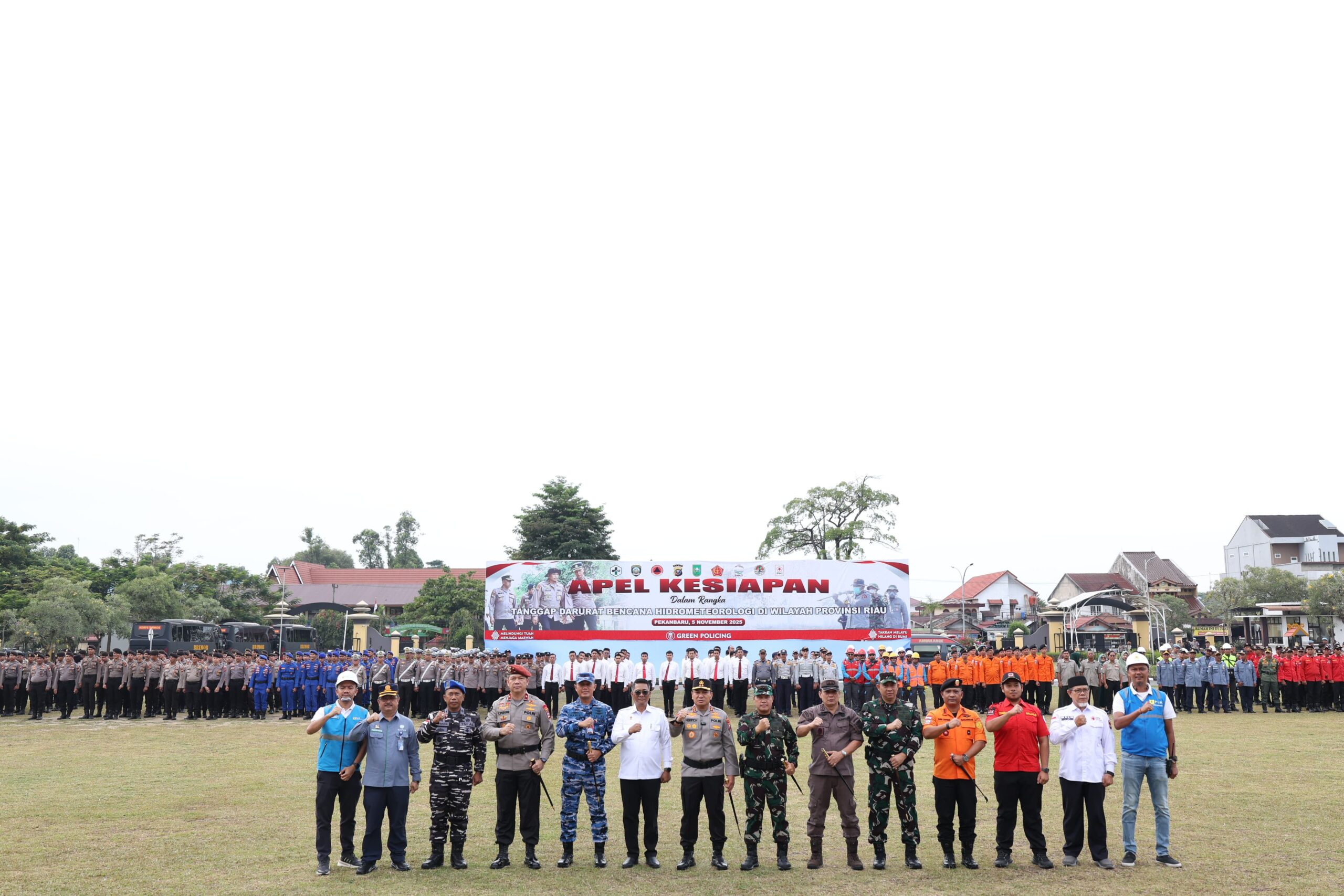 Rokan Hulu | Faktanusantararaya.com-Kepolisian Daerah (Polda) Riau menggelar Apel Siaga Bencana Hidrometeorologi dalam menghadapi cuaca ekstrem. Apel ini digelar sebagai bentuk kesiapsiagaan personel hingga sarana dan prasarana tanggap bencana.Apel digelar di Lapangan Polda Riau, Jalan Pattimura, Kota Pekanbaru, Rabu (5/11/2025) pagi, dipimpin langsung oleh Kapolda Riau Irjen Pol Herry Heryawan. Apel melibatkan ratusan personel gabungan dari Polda Riau, Tentara Nasional Indonesia (TNI), Badan Nasional Penanggulangan Bencana Daerah, serta stakeholders lainnya.