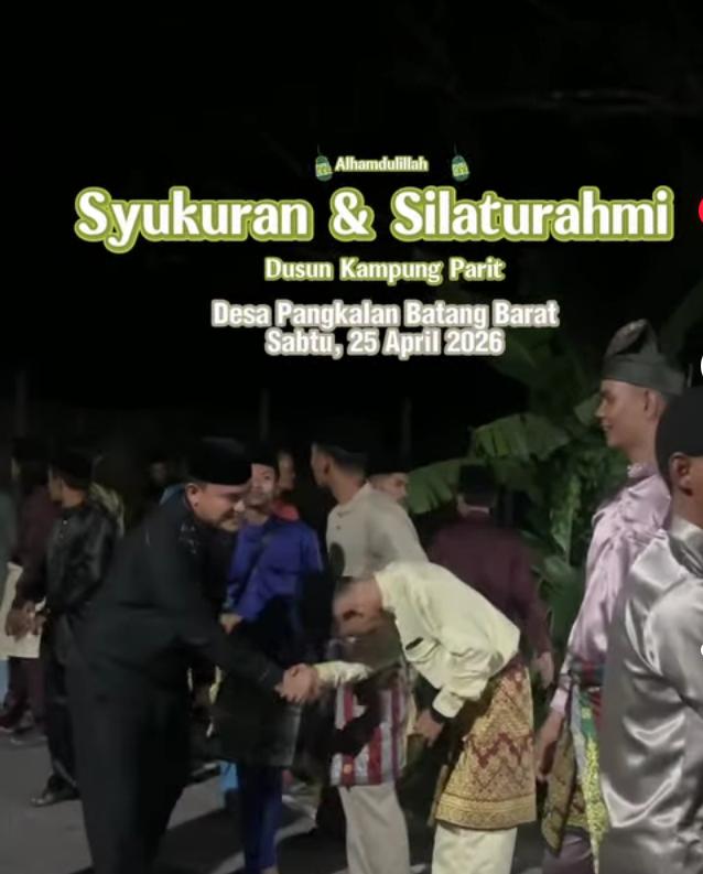 Faktanusantararaya.com, Puji syukur kepda allah SWT Alhamdulillah malam ini hari Sabtu tanggal 25 April 2026 telah terlaksana kan syukuran dan silahturahmi masyarakat dusun kampung parit desa pangkalan batang barat.kami mengucapkan terimakasih sebesar besar nya kepada camat Bengkalis bapak Rafli Kurniawan S.IP.,M.Si serta istri ,anggota DPRD kabupaten Bengkalis bapak Irmi syakip Arsalan M.Si yang bersedia hadir menghadiri memenuhi undangan.