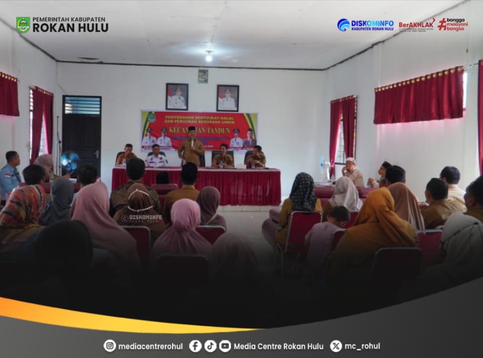 Kegiatan ini merupakan bentuk komitmen Pemerintah Kabupaten Rokan Hulu dalam mendorong peningkatan kualitas dan daya saing Usaha Mikro, Kecil, dan Menengah (UMKM), khususnya dalam pemenuhan legalitas usaha dan jaminan kehalalan produk.Dalam kegiatan tersebut, Wakil Bupati didampingi Kepala Dinas Koperasi, Transmigrasi dan Tenaga Kerja (Koptransnaker) Rohul, Suparno, S.Hut, Camat Tandun Feriadi, S.IP., M.Si, unsur Forkopimcam, tokoh masyarakat, serta para pelaku UMKM penerima sertifikat halal.